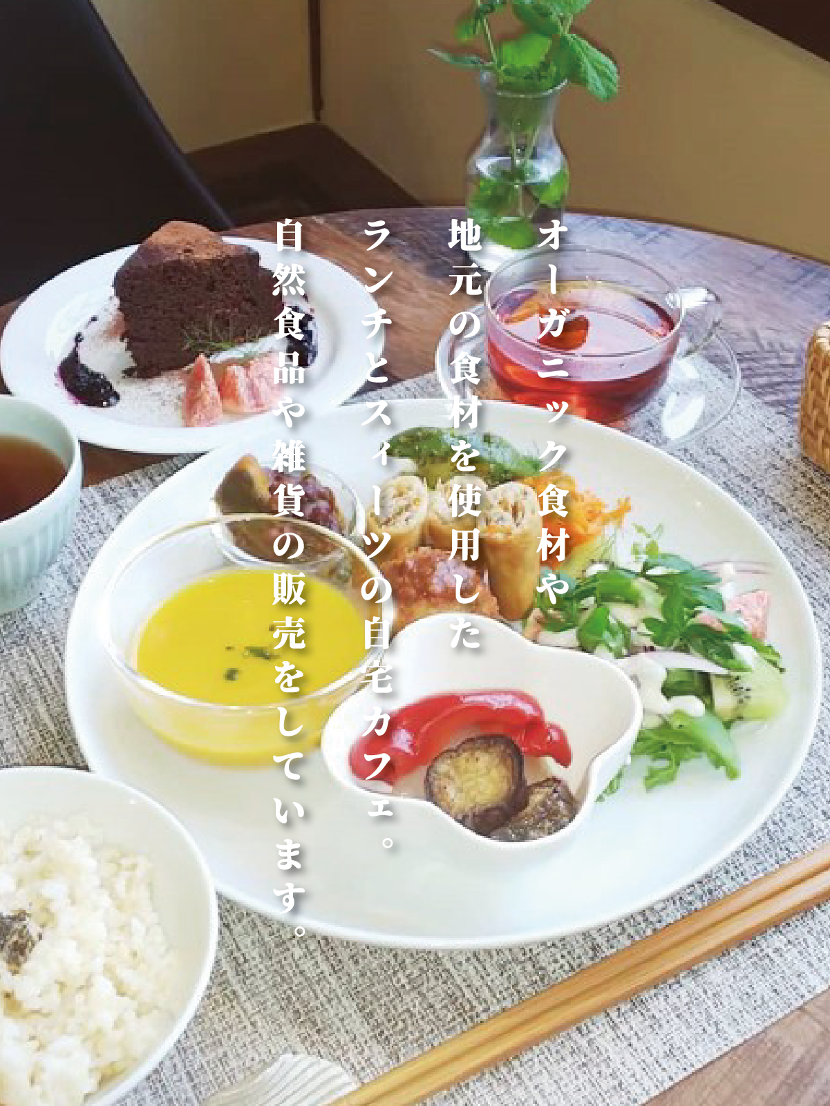 オーガニック食材や地元の食材を使用したランチとスィーツの自宅カフェです。
