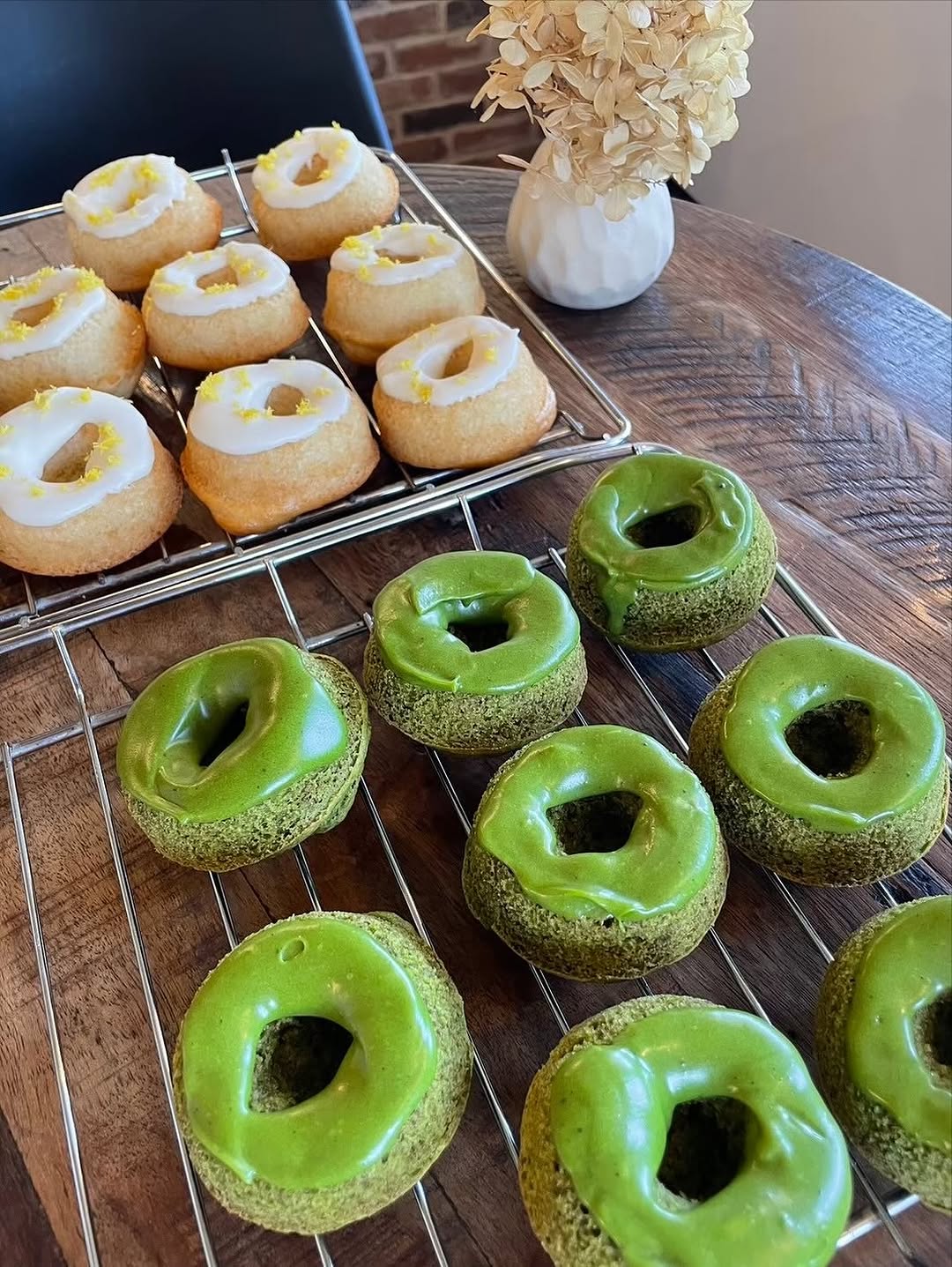 今回ご参加くださる皆さんとチャレンジする『米粉レモンケーキと抹茶のドーナツ教室』のケーキ写真です☺️