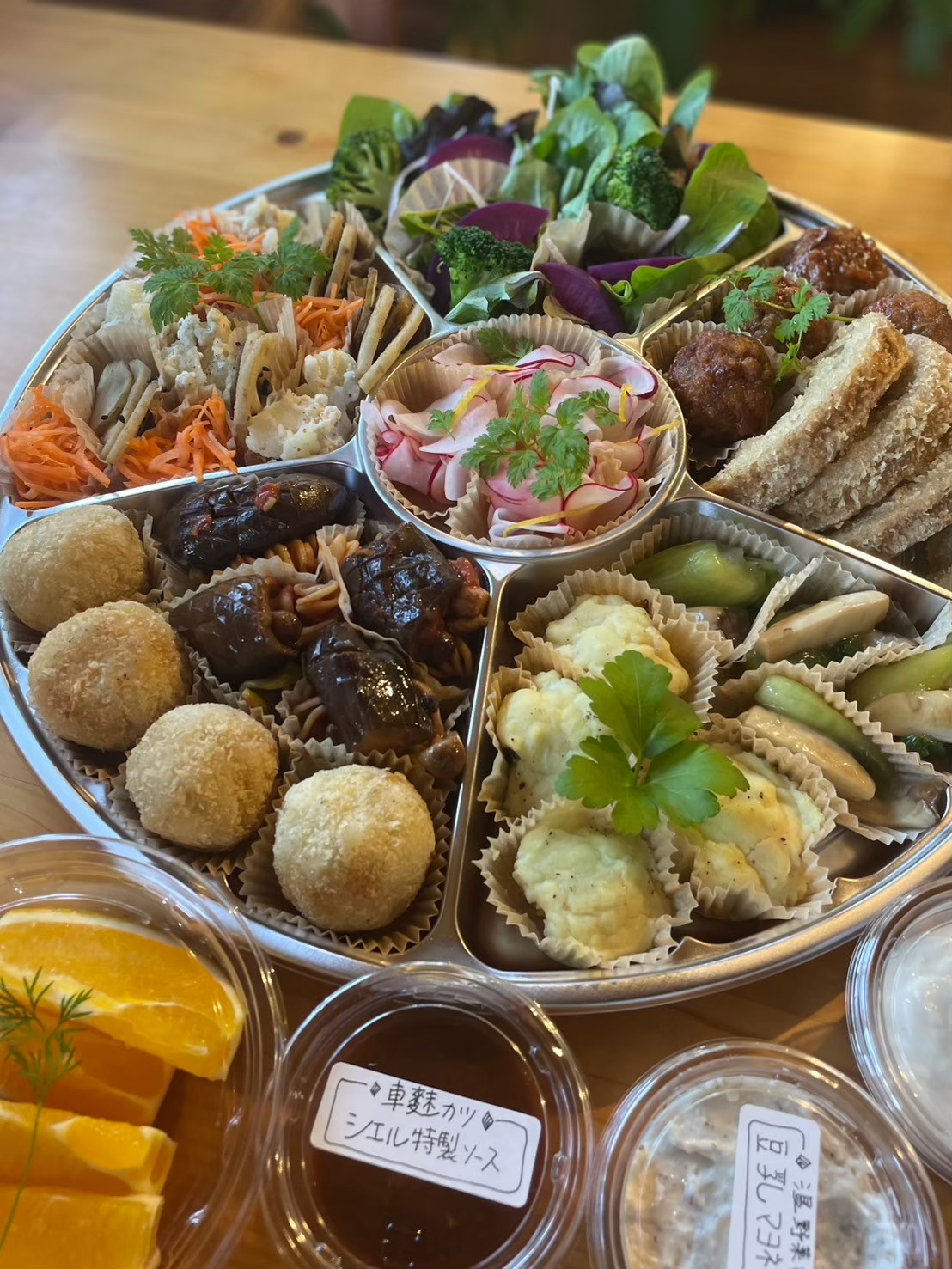 (写真) 菜食オードブルの見本(約4名様分)です。*お料理内容は当日の仕入れ関係により変更する場合があります。